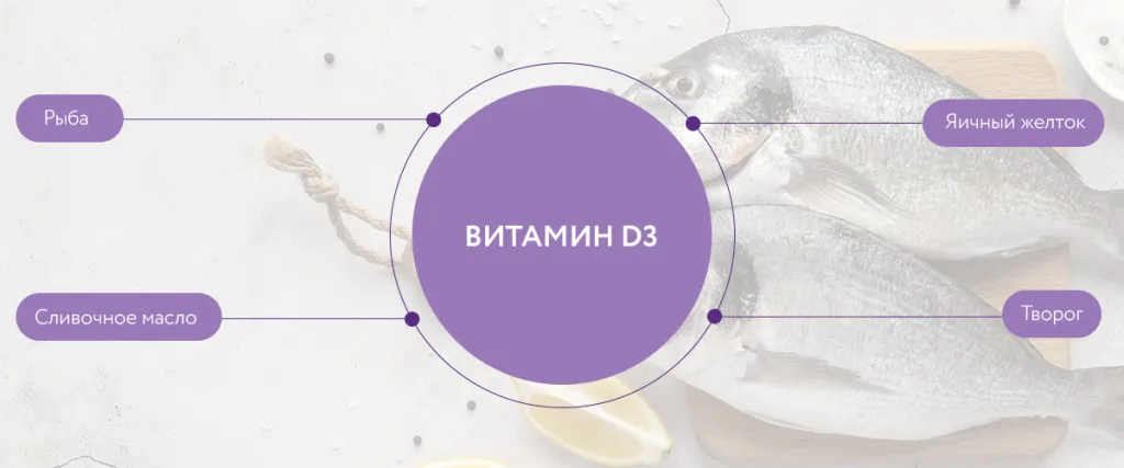 Vitamin D3 se nachází v tučných rybách, másle, vaječném žloutku a také je syntetizován naší kůží pod vlivem slunečního záření.