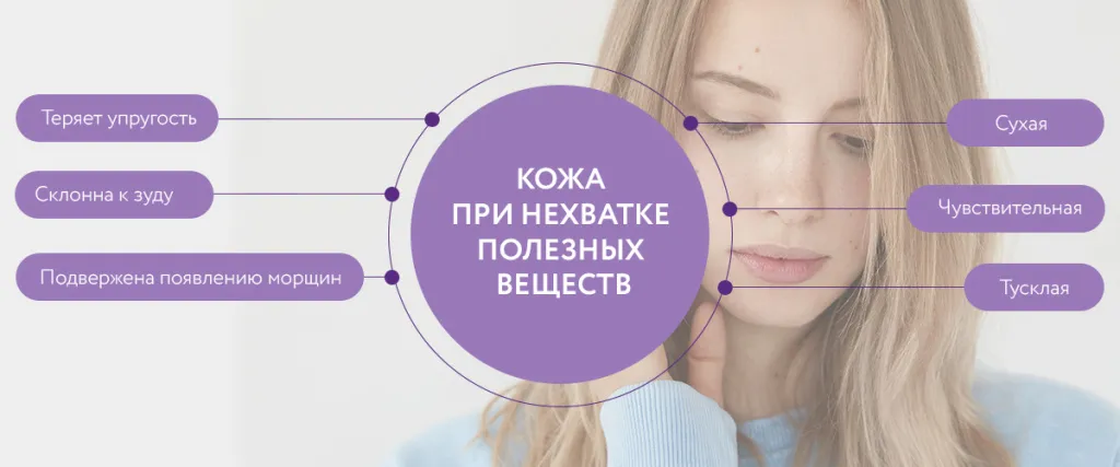 Zhoršení stavu kůže a jejích příloh (vlasy, nehty, mazové a potní žlázy) je jedním z nejviditelnějších vnějších příznaků nedostatku živin v těle. Nedostatek vitaminu se vyvíjí postupně, takže rychlá reakce pomáhá vyhnout se výskytu závažnějších příznaků.